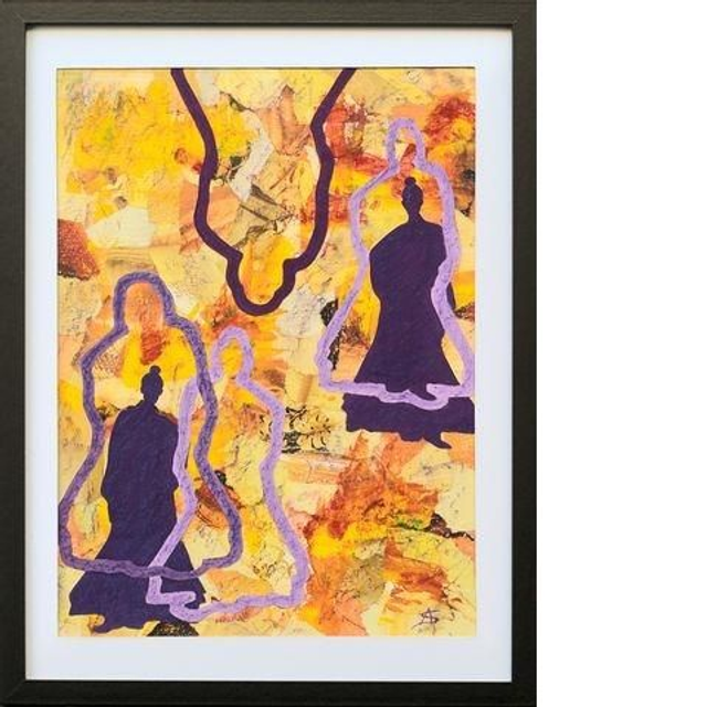 Œuvre originale Collage, gouache et pastels gras sur papier 40*30cm (cadre noir, visuel 35*27cm) Livraison hors France métropolitaine : tarif sur demande