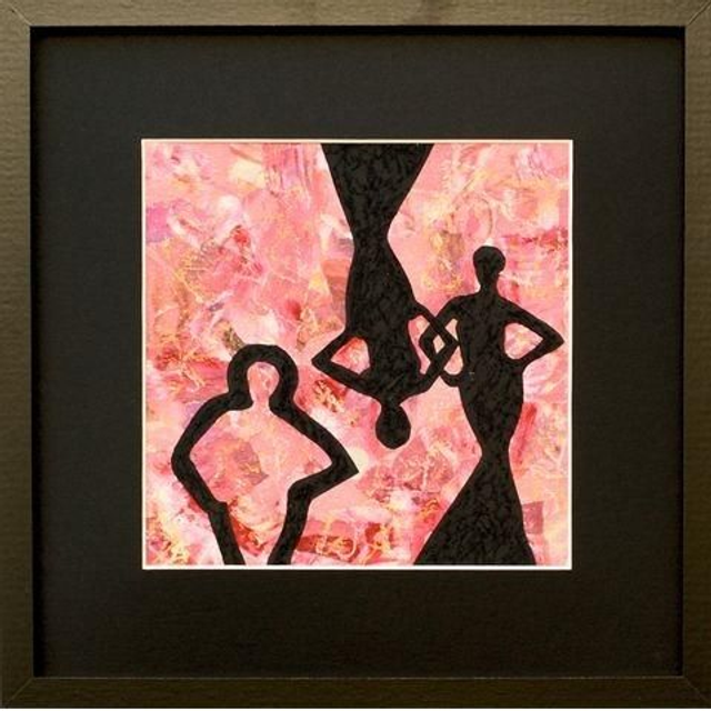 Œuvre originale Collage, gouache et pastels gras sur papier 30*30cm (cadre noir, visuel 20*20cm) Livraison hors France métropolitaine : tarif sur demande