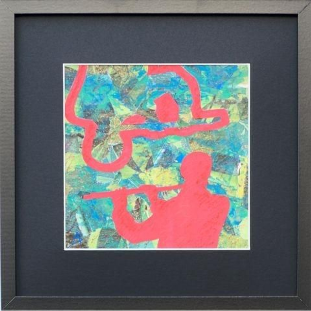 Œuvre originale Collage, gouache et pastels gras sur papier 30*30cm (cadre noir, visuel 20*20cm) Livraison hors France métropolitaine : tarif sur demande