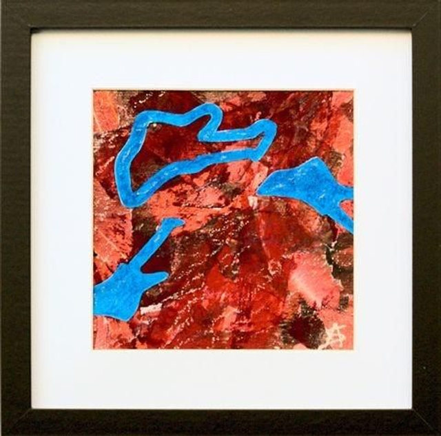 Œuvre originale Collage, gouache et pastels gras sur papier 20*20cm (cadre noir, visuel 15*15cm) Livraison hors France métropolitaine : tarif sur demande