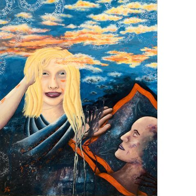 Transfert et huile sur toile