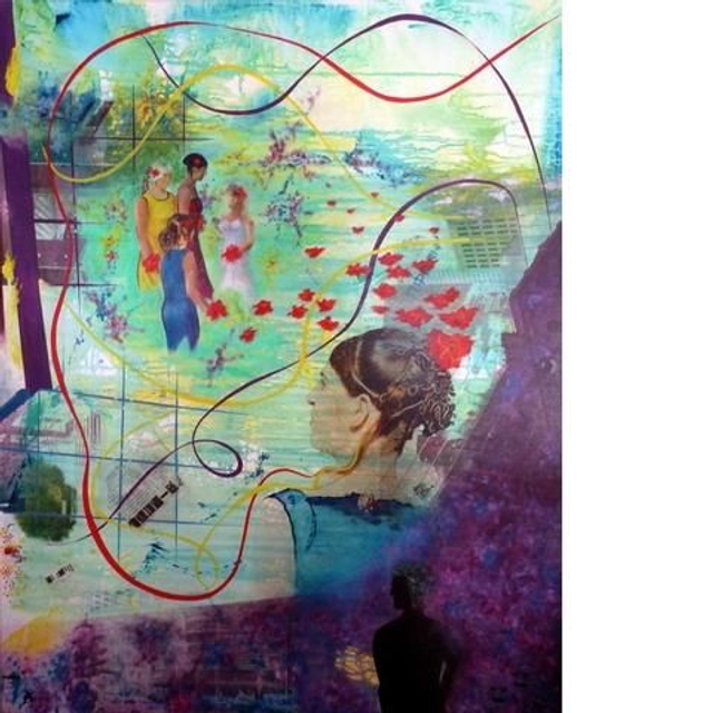 Transfert, acrylique et huile sur toile