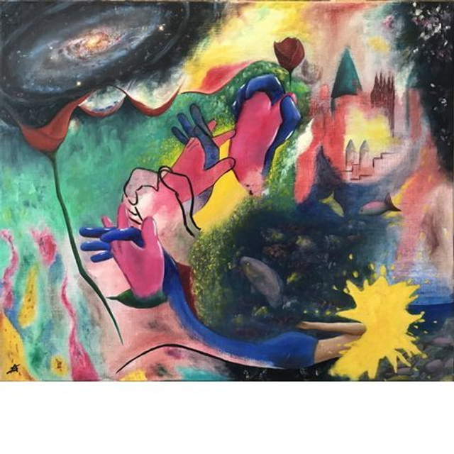 Transfert, acrylique et huile sur toile