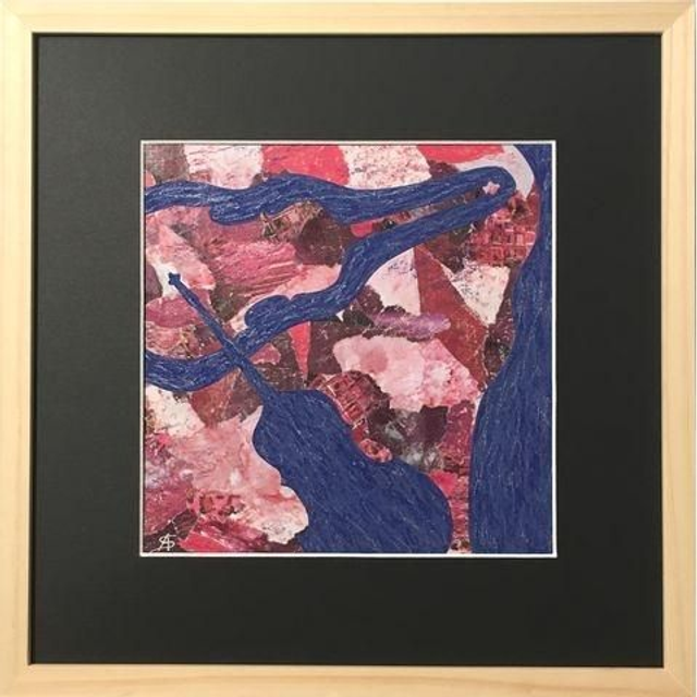 Œuvre originale Collage, gouache et pastels gras sur papier 30*30cm (cadre bois naturel, visuel 20*20cm) Livraison hors France métropolitaine : tarif sur demande